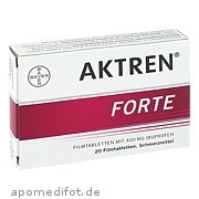 Aktren forte: Das Arzneimittelist ein entzündungshemmendes und schmerzstillendes Arzneimittel (nicht-steroidales Antiphlogistikum/Analgetikum). Es enthält den Wirkstoff Ibuprofen. Das Arzneimittel wird angewendet bei leichten bis mäßig starken Schmerzen wie Kopfschmerzen, Zahnschmerzen, Regelschmerzen; Fieber.