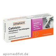 Startseite » Apotheken Preisvergleich: Cetirizin - ratiopharm bei Allergien 10 mg Filmtabl.