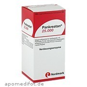 KREON 25000: Das Präparat enthält ein Enzymgemisch, welches „Pankreatin" genannt wird. Pankreatin unterstützt die Verdauung. Die Enzyme werden aus Schweinebauchspeicheldrüsen gewonnen. Das Präparat enthält kleine magensaftresistente Pellets, die das Pankreatin langsam in den Darm freisetzen. Das Arzneimittel wird angewendet bei Verdauungsstörungen (Maldigestion) infolge ungenügender oder fehlender ... (mehr siehe: "Produktinformationen")